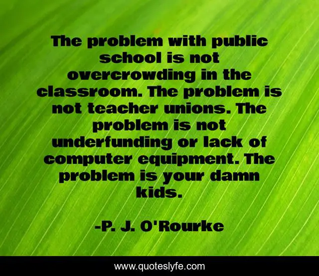 "P. J. O'Rourke Quotes." Quoteslyfe.com, 2025. Fri. 05 Dec. 2025. <https://www.quoteslyfe.com/quote/The-problem-with-public-school-is-not-293439>.
