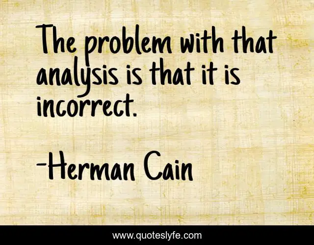 This page presents the quote "The problem with that analysis is that it is incorrect.". Author of this quote is Herman Cain. This quote is about politics, republicans,.