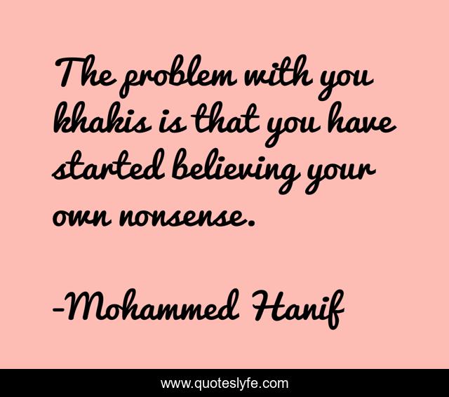 This page presents the quote "The problem with you khakis is that you have started believing your own nonsense.". Author of this quote is Mohammed Hanif. .