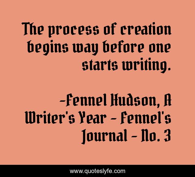 "Fennel Hudson, A Writer's Year - Fennel's Journal - No. 3 Quotes." Quoteslyfe.com, 2025. Fri. 05 Dec. 2025. <https://www.quoteslyfe.com/quote/The-process-of-creation-begins-way-before-108350>.