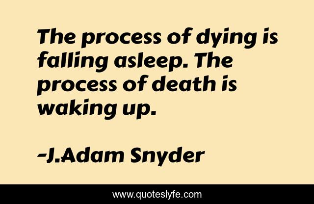 This page presents the quote "The process of dying is falling asleep. The process of death is waking up.". Author of this quote is J.Adam Snyder. This quote is about occultism, death, religion, esoteric-wisdom, spirituality, life-after-death, sleeping, j-adam-snyder,.