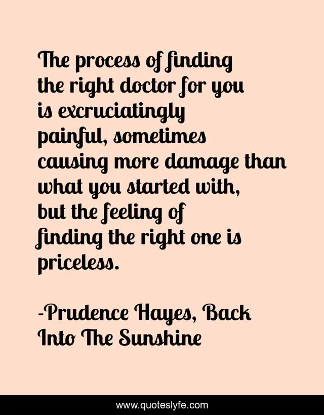 "Prudence Hayes, Back Into The Sunshine Quotes." Quoteslyfe.com, 2025. Fri. 05 Dec. 2025. <https://www.quoteslyfe.com/quote/The-process-of-finding-the-right-doctor-103868>.