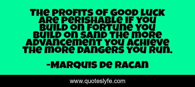 This page presents the quote "The profits of good luck are perishable if you build on fortune you build on sand the more advancement you achieve the more dangers you run.". Author of this quote is Marquis de Racan. This quote is about recognize, maximize,.