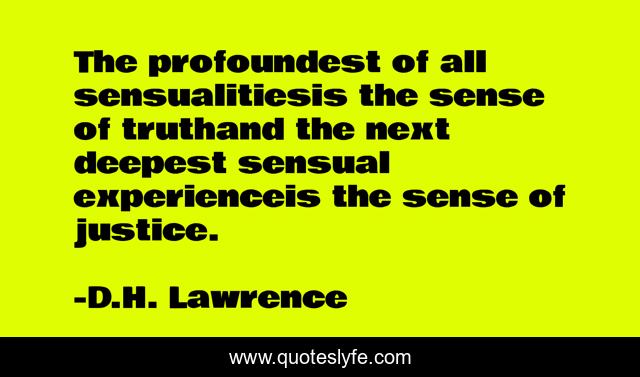 This page presents the quote "The profoundest of all sensualitiesis the sense of truthand the next deepest sensual experienceis the sense of justice.". Author of this quote is D.H. Lawrence. .