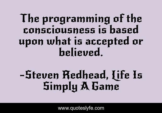 "Steven Redhead, Life Is Simply A Game Quotes." Quoteslyfe.com, 2025. Sat. 06 Dec. 2025. <https://www.quoteslyfe.com/quote/The-programming-of-the-consciousness-is-based-155696>.