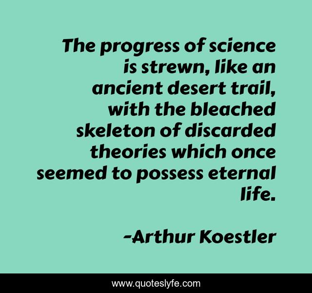 This page presents the quote "The progress of science is strewn, like an ancient desert trail, with the bleached skeleton of discarded theories which once seemed to possess eternal life.". Author of this quote is Arthur Koestler. This quote is about progress, life, desert,.