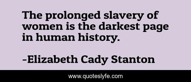 This page presents the quote "The prolonged slavery of women is the darkest page in human history.". Author of this quote is Elizabeth Cady Stanton. This quote is about history, page, slavery,.
