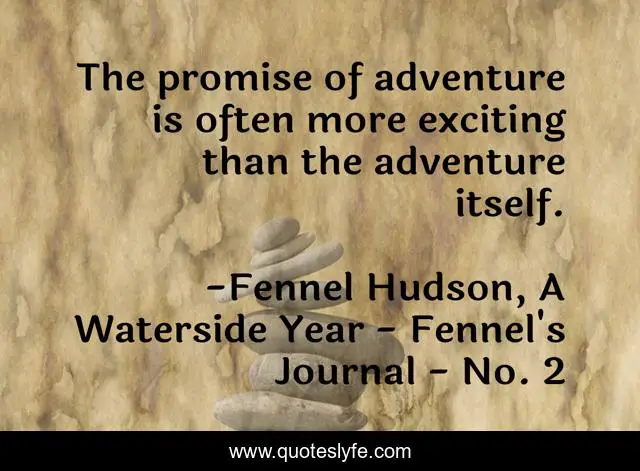 "Fennel Hudson, A Waterside Year - Fennel's Journal - No. 2 Quotes." Quoteslyfe.com, 2025. Fri. 05 Dec. 2025. <https://www.quoteslyfe.com/quote/The-promise-of-adventure-is-often-more-151739>.