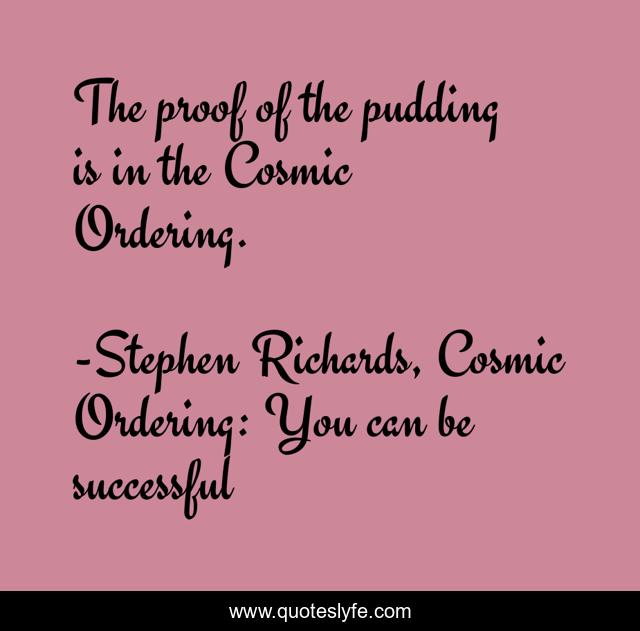 "Stephen Richards, Cosmic Ordering: You can be successful Quotes." Quoteslyfe.com, 2025. Sat. 06 Dec. 2025. <https://www.quoteslyfe.com/quote/The-proof-of-the-pudding-is-in-17007>.