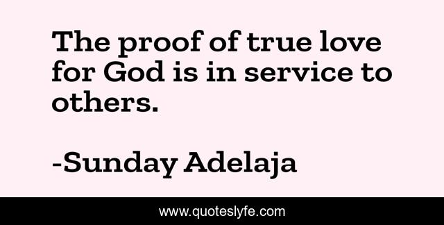 This page presents the quote "The proof of true love for God is in service to others.". Author of this quote is Sunday Adelaja. This quote is about love, service, others, true, affection, proof,.