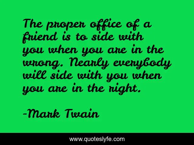 This page presents the quote "The proper office of a friend is to side with you when you are in the wrong. Nearly everybody will side with you when you are in the right.". Author of this quote is Mark Twain. .