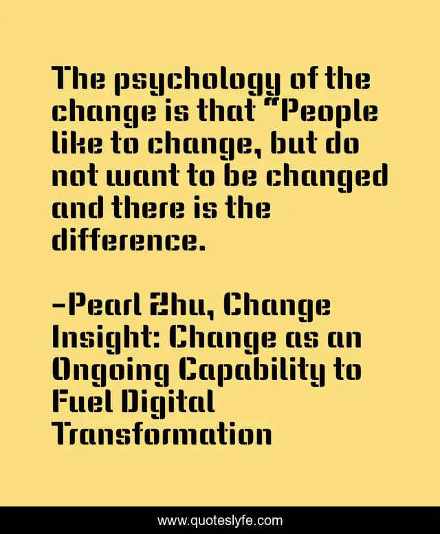 "Pearl Zhu, Change Insight: Change as an Ongoing Capability to Fuel Digital Transformation Quotes." Quoteslyfe.com, 2025. Fri. 05 Dec. 2025. <https://www.quoteslyfe.com/quote/The-psychology-of-the-change-is-that-60074>.