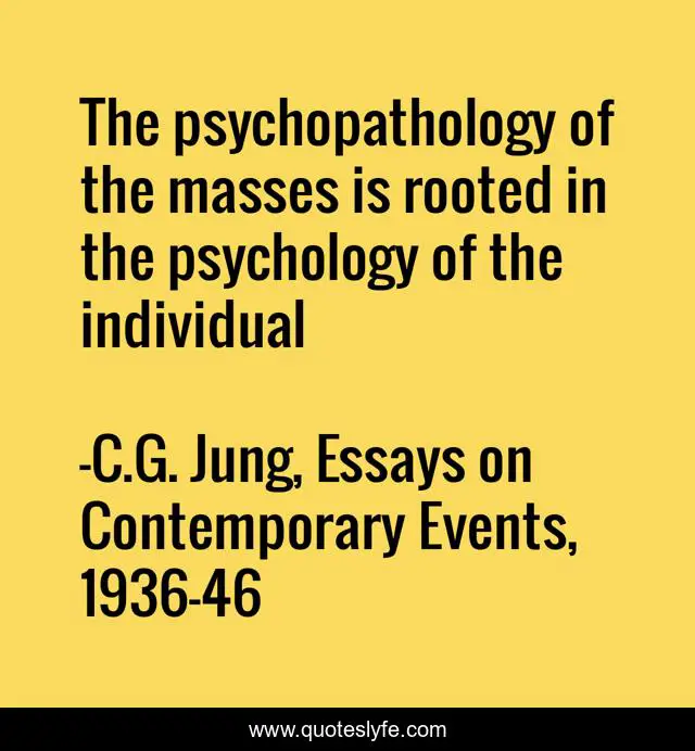 "C.G. Jung, Essays on Contemporary Events, 1936-46 Quotes." Quoteslyfe.com, 2025. Mon. 08 Dec. 2025. <https://www.quoteslyfe.com/quote/The-psychopathology-of-the-masses-is-rooted-103258>.