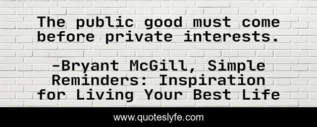 This page presents the quote "The public good must come before private interests.". Author of this quote is Bryant McGill, Simple Reminders: Inspiration for Living Your Best Life. This quote is about interests, publicity, goodness, privacy,.