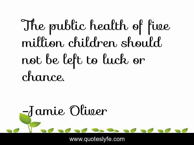 This page presents the quote "The public health of five million children should not be left to luck or chance.". Author of this quote is Jamie Oliver. This quote is about health, children, luck,.