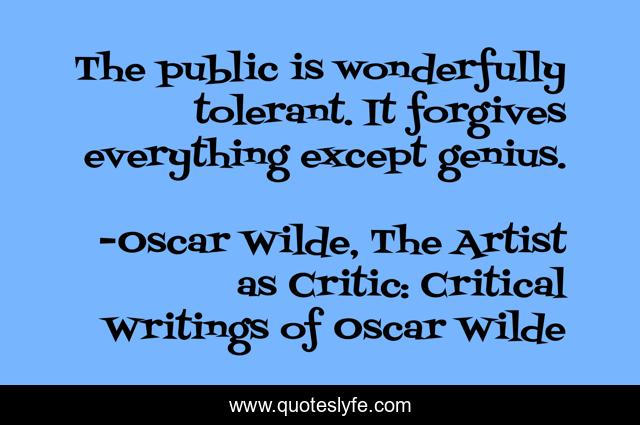 "Oscar Wilde, The Artist as Critic: Critical Writings of Oscar Wilde Quotes." Quoteslyfe.com, 2025. Fri. 05 Dec. 2025. <https://www.quoteslyfe.com/quote/The-public-is-wonderfully-tolerant-It-forgives-55240>.