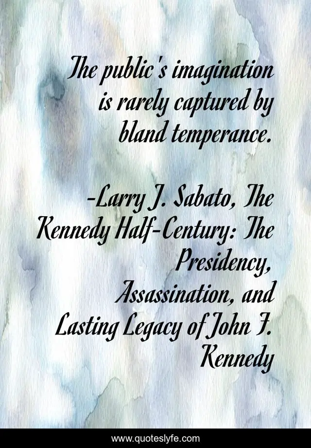 This page presents the quote "The public's imagination is rarely captured by bland temperance.". Author of this quote is Larry J. Sabato, The Kennedy Half-Century: The Presidency, Assassination, and Lasting Legacy of John F. Kennedy. This quote is about motivation, vision, inspiration,.