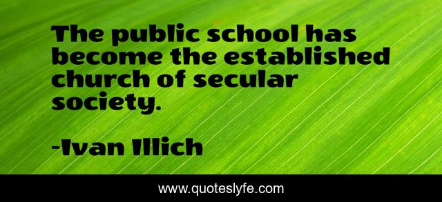 This page presents the quote "The public school has become the established church of secular society.". Author of this quote is Ivan Illich. This quote is about school, church,.