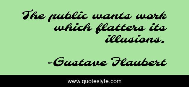 This page presents the quote "The public wants work which flatters its illusions.". Author of this quote is Gustave Flaubert. This quote is about art, readers, creativity, writing, writers, artists, flattery, public,.