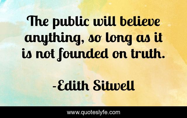 This page presents the quote "The public will believe anything, so long as it is not founded on truth.". Author of this quote is Edith Sitwell. This quote is about believe, long, anything,.