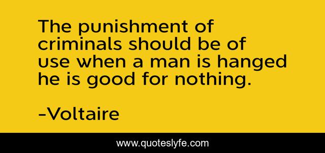 This page presents the quote "The punishment of criminals should be of use when a man is hanged he is good for nothing.". Author of this quote is Voltaire. .