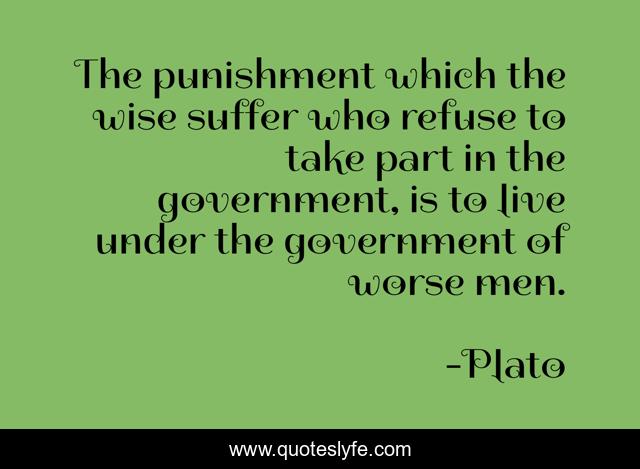 This page presents the quote "The punishment which the wise suffer who refuse to take part in the government, is to live under the government of worse men.". Author of this quote is Plato. This quote is about live, men, wise,.