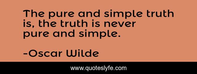 This page presents the quote "The pure and simple truth is, the truth is never pure and simple.". Author of this quote is Oscar Wilde. This quote is about oscar-wilde, pure-and-simple, truth,.