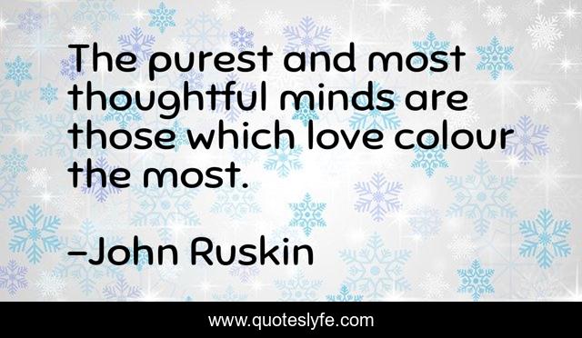 This page presents the quote "The purest and most thoughtful minds are those which love colour the most.". Author of this quote is John Ruskin. This quote is about painters, painting,.