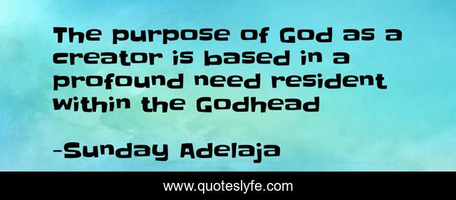 This page presents the quote "The purpose of God as a creator is based in a profound need resident within the Godhead". Author of this quote is Sunday Adelaja. This quote is about reality-of-life, resident, purpose-of-god, purpose, need, meaningful,.