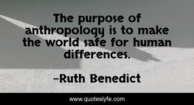 This page presents the quote "The purpose of anthropology is to make the world safe for human differences.". Author of this quote is Ruth Benedict. This quote is about anthropology, differences, peace,.