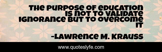 This page presents the quote "The purpose of education is not to validate ignorance but to overcome it". Author of this quote is Lawrence M. Krauss. .