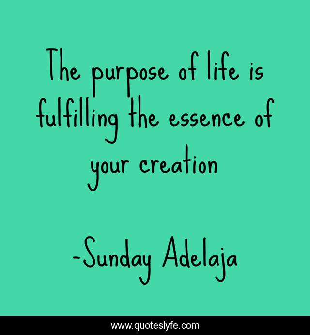 This page presents the quote "The purpose of life is fulfilling the essence of your creation". Author of this quote is Sunday Adelaja. This quote is about love, people, money, principles, worship, destiny, god, nature-of-god, image-of-god,.