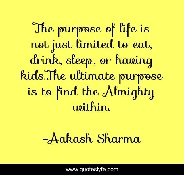 This page presents the quote "The purpose of life is not just limited to eat, drink, sleep, or having kids.The ultimate purpose is to find the Almighty within.". Author of this quote is Aakash Sharma. .
