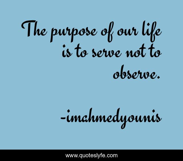 This page presents the quote "The purpose of our life is to serve not to observe.". Author of this quote is imahmedyounis. This quote is about life, positive, motivational, confidence, optimistic, inspirational, inspirational-life, enthusiasm,.