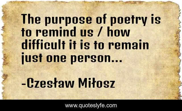 This page presents the quote "The purpose of poetry is to remind us / how difficult it is to remain just one person...". Author of this quote is Czesław Miłosz. .