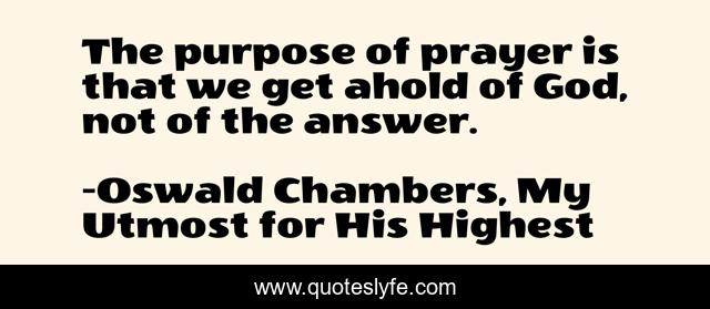"Oswald Chambers, My Utmost for His Highest Quotes." Quoteslyfe.com, 2025. Sun. 07 Dec. 2025. <https://www.quoteslyfe.com/quote/The-purpose-of-prayer-is-that-we-114641>.
