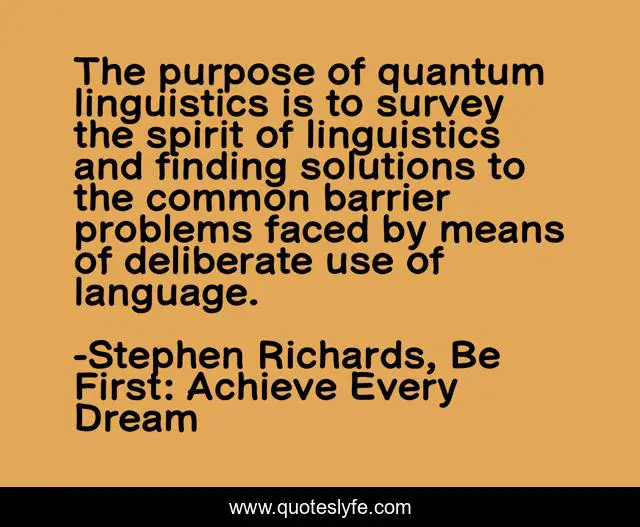 "Stephen Richards, Be First: Achieve Every Dream Quotes." Quoteslyfe.com, 2025. Fri. 05 Dec. 2025. <https://www.quoteslyfe.com/quote/The-purpose-of-quantum-linguistics-is-to-78025>.
