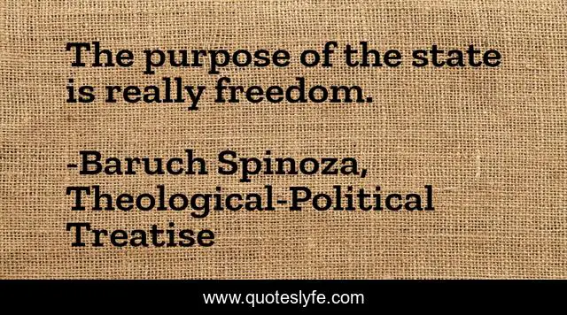 "Baruch Spinoza, Theological-Political Treatise Quotes." Quoteslyfe.com, 2025. Fri. 05 Dec. 2025. <https://www.quoteslyfe.com/quote/The-purpose-of-the-state-is-really-55067>.