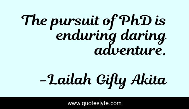 "Lailah Gifty Akita Quotes." Quoteslyfe.com, 2025. Fri. 05 Dec. 2025. <https://www.quoteslyfe.com/quote/The-pursuit-of-PhD-is-enduring-daring-34192>.