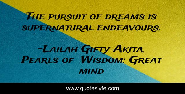 "Lailah Gifty Akita, Pearls of Wisdom: Great mind Quotes." Quoteslyfe.com, 2025. Mon. 08 Dec. 2025. <https://www.quoteslyfe.com/quote/The-pursuit-of-dreams-is-supernatural-endeavours-98725>.