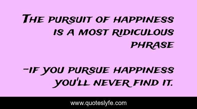 This page presents the quote "The pursuit of happiness is a most ridiculous phrase". Author of this quote is if you pursue happiness you'll never find it.. .