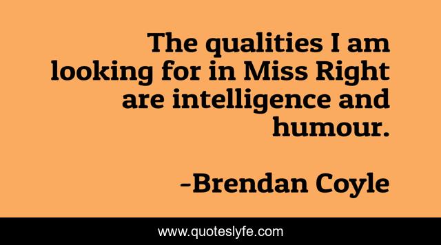 This page presents the quote "The qualities I am looking for in Miss Right are intelligence and humour.". Author of this quote is Brendan Coyle. This quote is about looking, humour,.