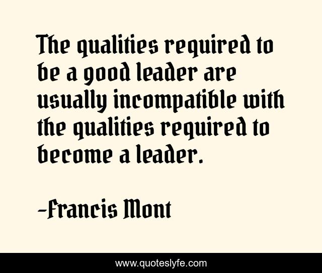 This page presents the quote "The qualities required to be a good leader are usually incompatible with the qualities required to become a leader.". Author of this quote is Francis Mont. This quote is about politics, humanity, psychology,.