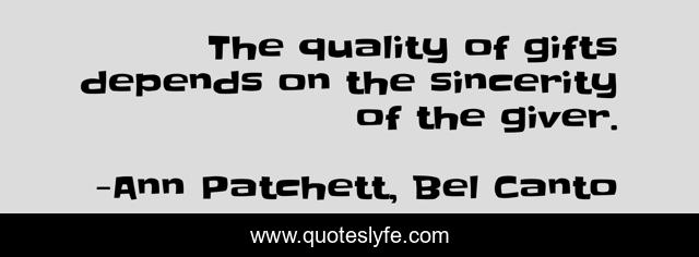 This page presents the quote "The quality of gifts depends on the sincerity of the giver.". Author of this quote is Ann Patchett, Bel Canto. .