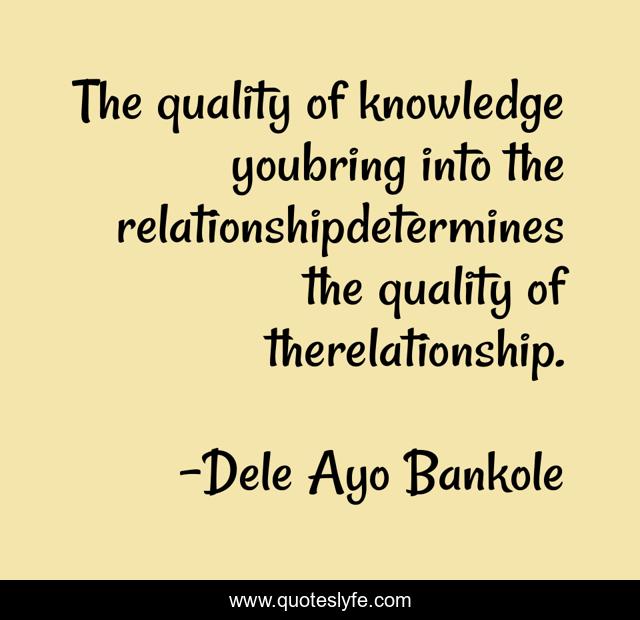 This page presents the quote "The quality of knowledge youbring into the relationshipdetermines the quality of therelationship.". Author of this quote is Dele Ayo Bankole. This quote is about relationships, family-life, knowledge,.
