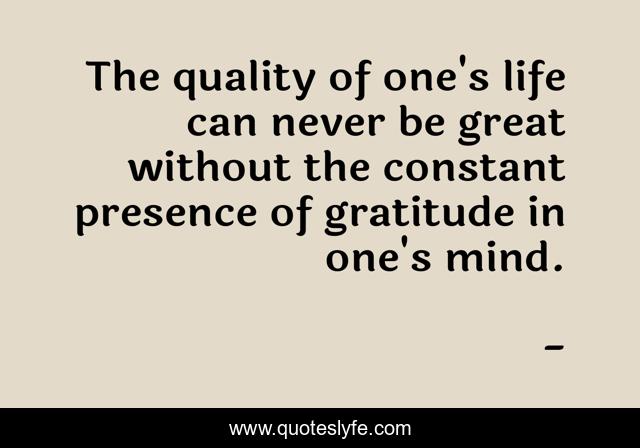 The quality of one's life can never be great without the constant presence of gratitude in one's mind.