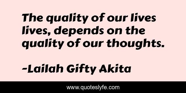 This page presents the quote "The quality of our lives lives, depends on the quality of our thoughts.". Author of this quote is Lailah Gifty Akita. This quote is about living, mind, life-lessons, thoughts, positive-thinking,.