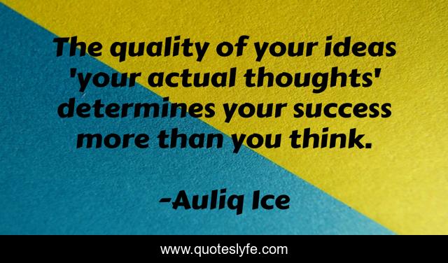 This page presents the quote "The quality of your ideas 'your actual thoughts' determines your success more than you think.". Author of this quote is Auliq Ice. This quote is about good-plans, success, good-thoughts, career-development, good-ideas, creativity, wisdom, planning, words-of-wisdom,.