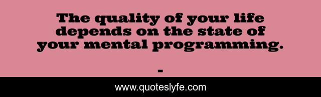 This page presents the quote "The quality of your life depends on the state of your mental programming.". Author of this quote is . This quote is about edmond-mbiaka, the-quality-of-your-life, mind-programming, your-life, your-mental-programming, the-state-of-your-mind,.
