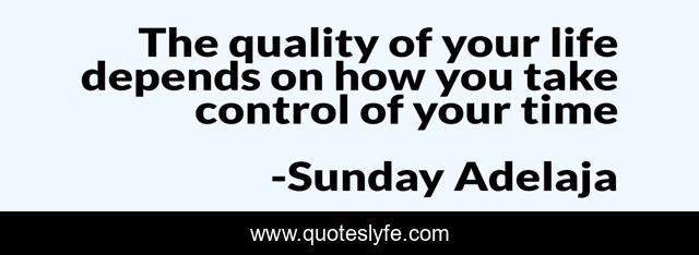 This page presents the quote "The quality of your life depends on how you take control of your time". Author of this quote is Sunday Adelaja. This quote is about life, blessing, finance, money, work, time-management, job, joblessness, purpose,.